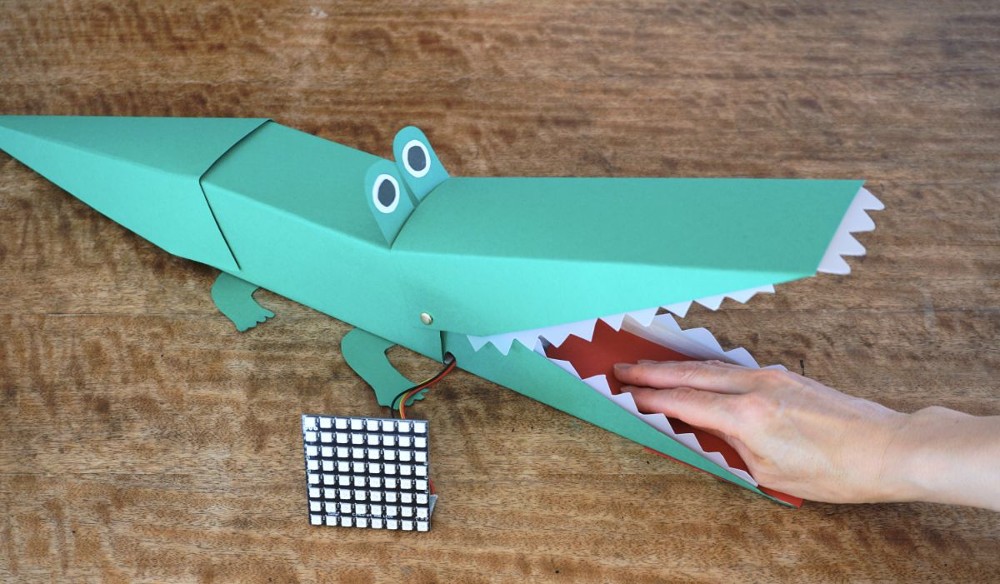 さぁ夏休み! 遊びをもりあげる楽しいゲームを作ってみましょう! ワニの口に手を入れると……パクッとかまれるかもしれないちょっとドキドキのゲームです。夏休みのプログラミング工作にもどうぞ!