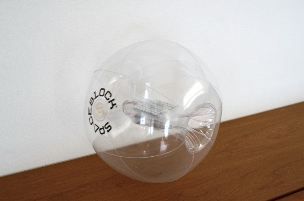 前回の記事で「三軸ジャイロ三軸加速度センサモジュール」の角度の値を使いましたが、今回は加速度の値を使って不思議な光るビーチボールを作ります。拡張パーツの楽しい仲間「スペースボール」を使いますよ! スペースボールはSPACEBLOCKを包み込める特別なビーチボールです。
