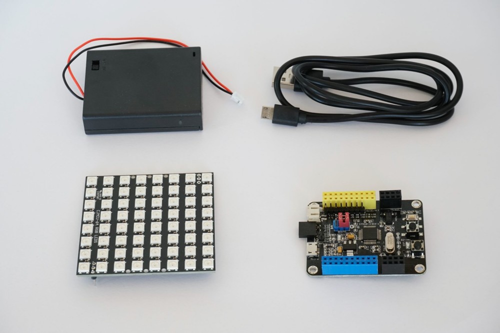 小さなものづくりコンピューター「SPACEBLOCK(スペースブロック)」で、早速初めてのプログラムを作ってみましょう。今回は、「8×8 RGB LEDマトリックスパネル」(以下、LEDパネル)を接続して、絵を表示する装置に挑戦します。